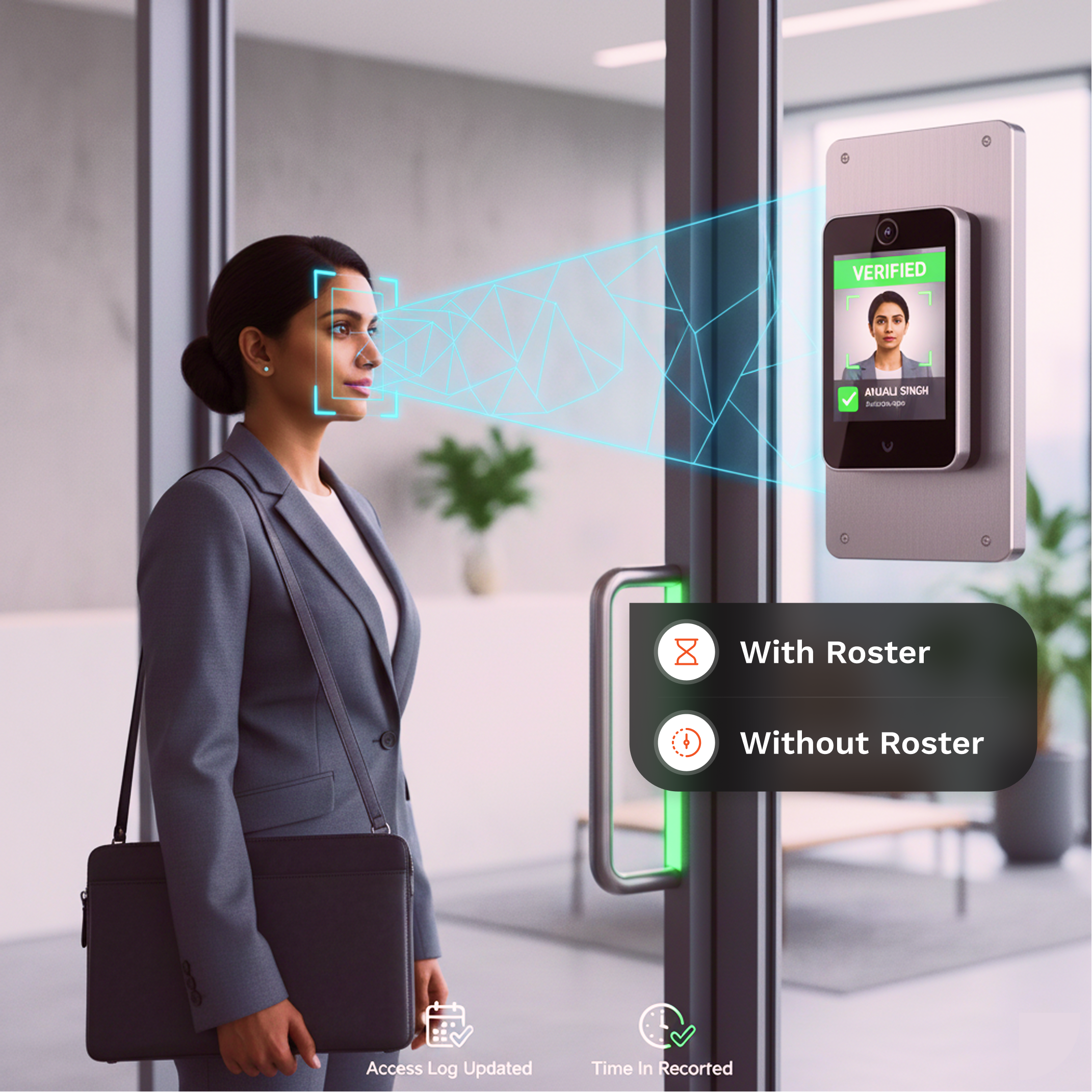Register your employee face and give attendance with & without roster through employee personal device or office recognized device.